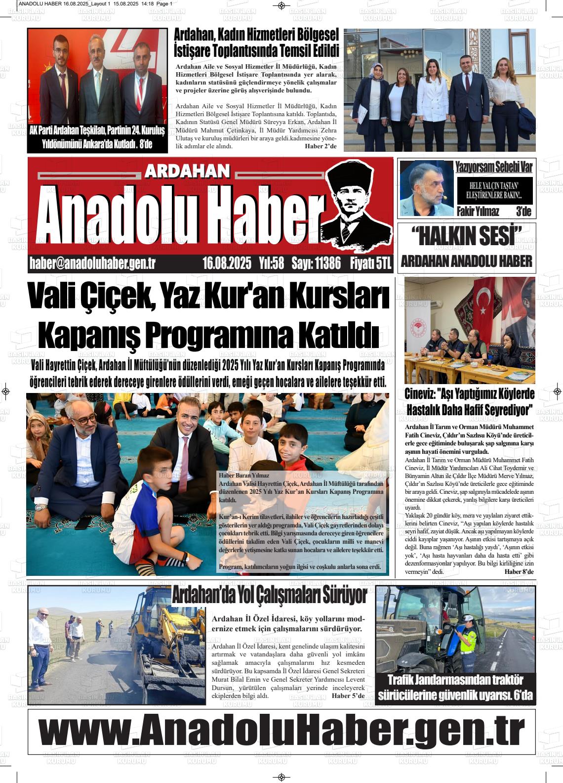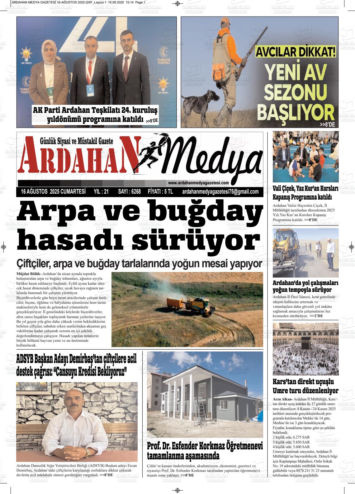 Ardahan Yerel Gazeteleri 04 Şubat 2026, Çarşamba Günü Manşeti