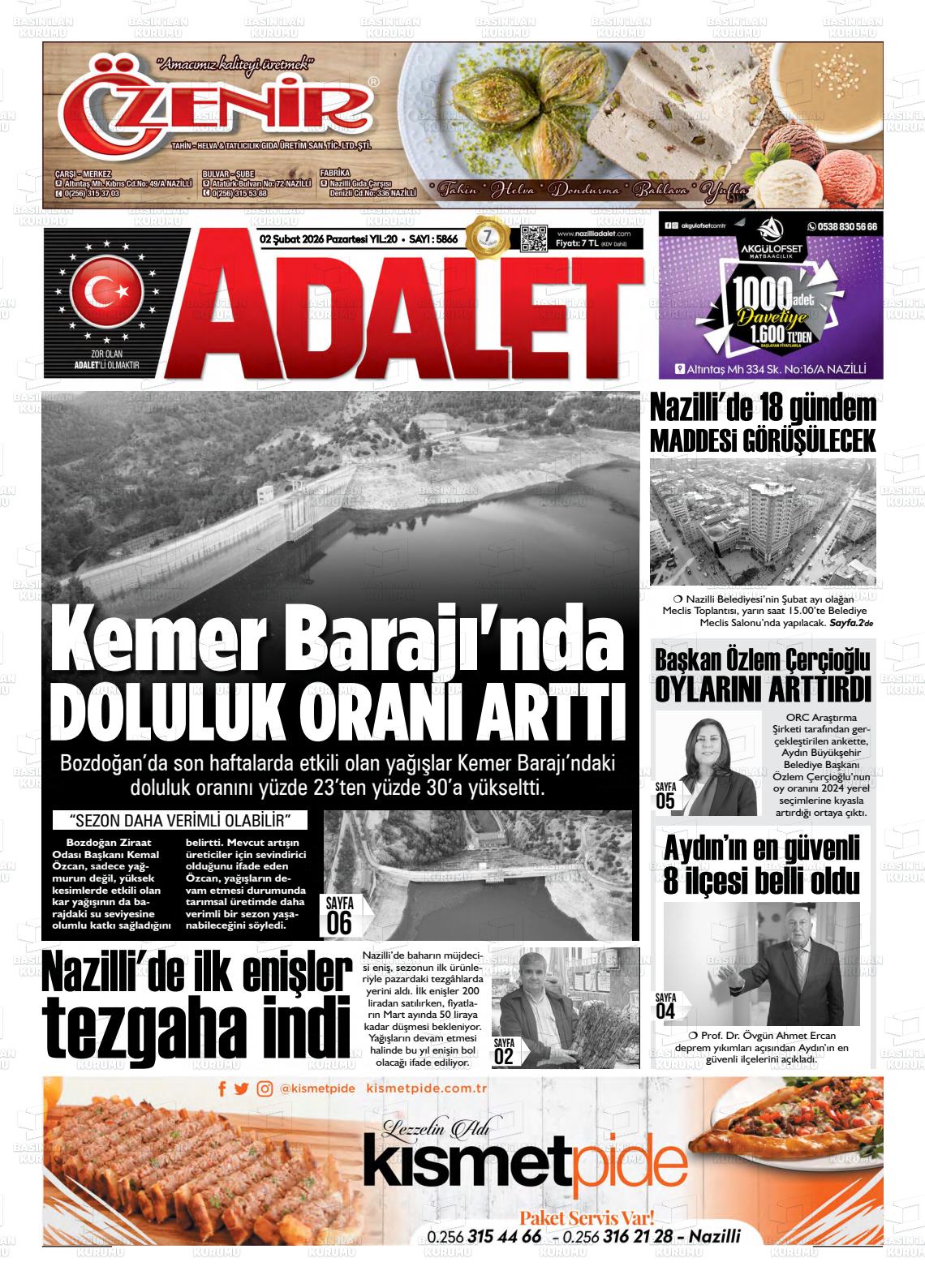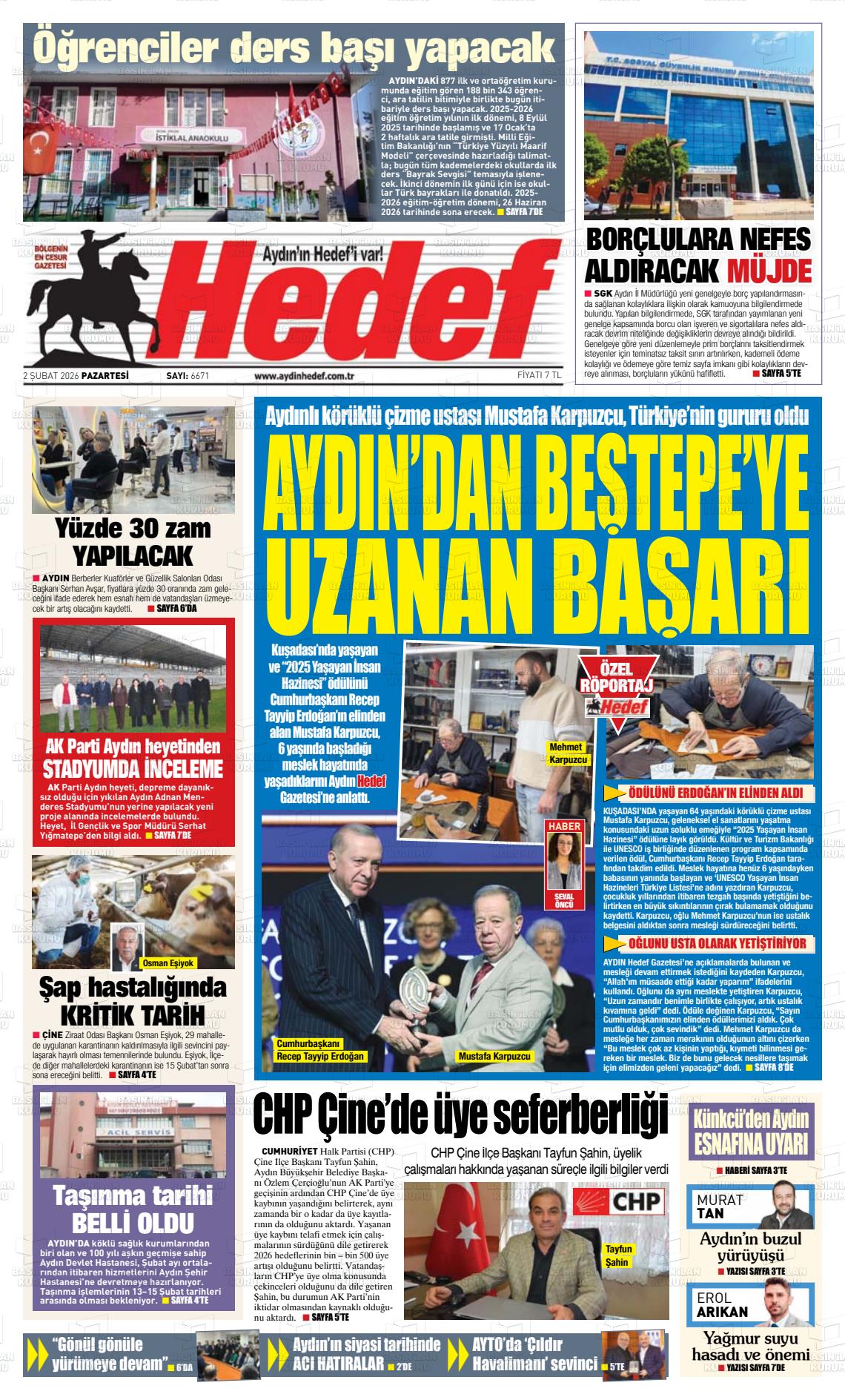 Aydın Yerel Gazeteleri 02 Şubat 2026, Pazartesi Günü Manşeti