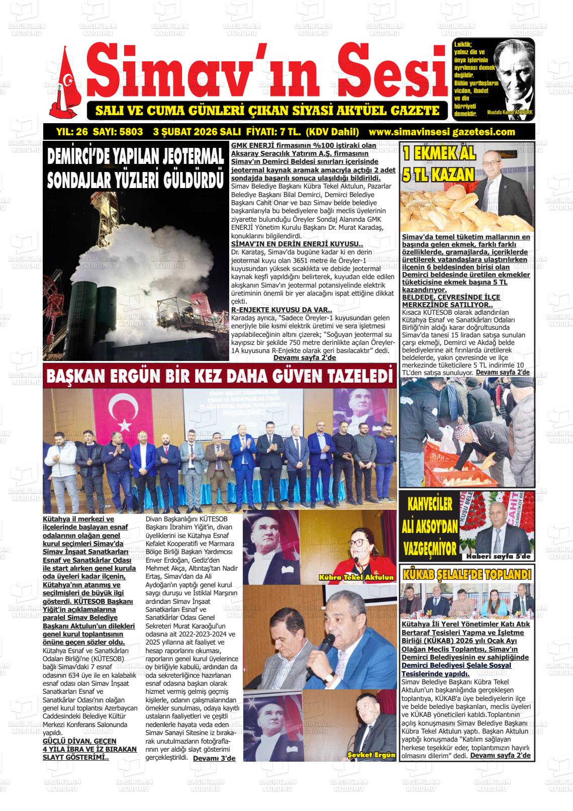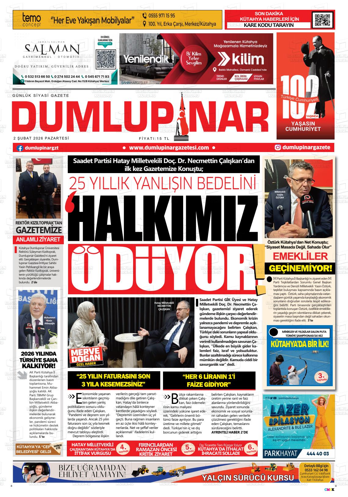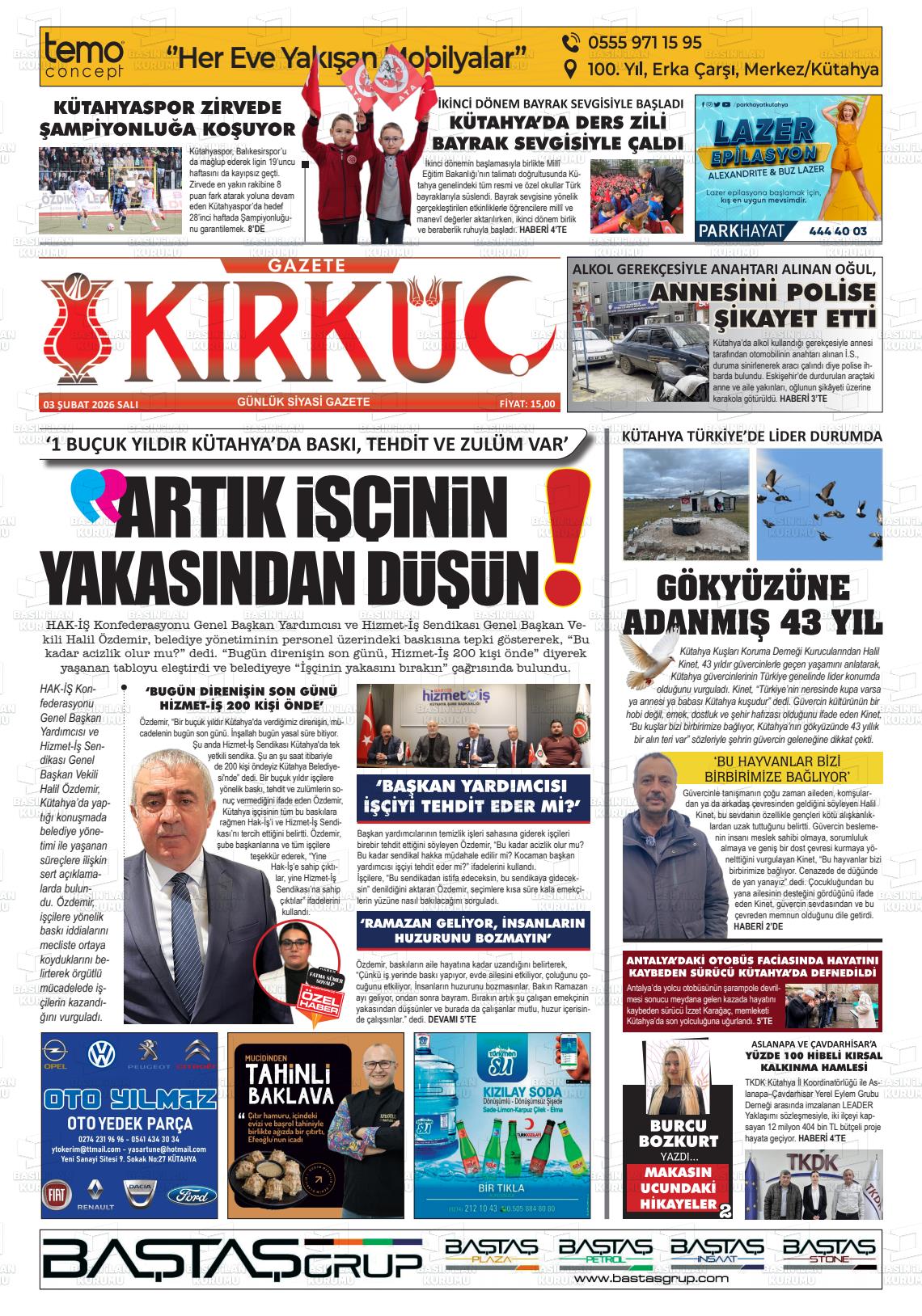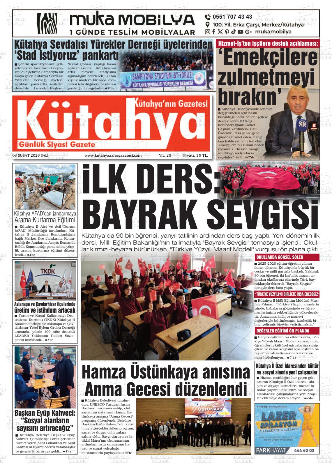 Kütahya Yerel Gazeteleri 03 Şubat 2026, Salı Günü Manşeti