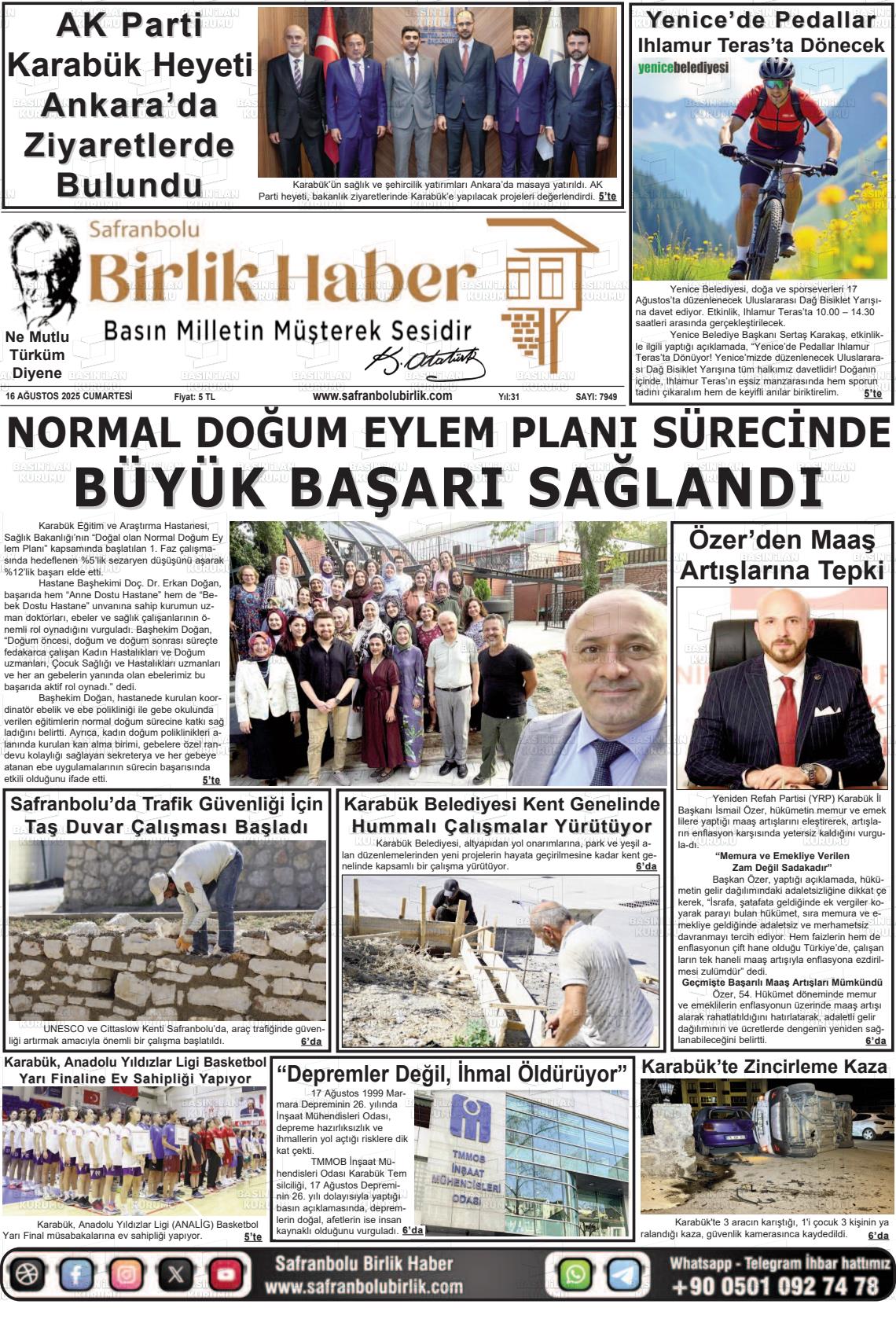 Karabük Yerel Gazeteleri 02 Şubat 2026, Pazartesi Günü Manşeti